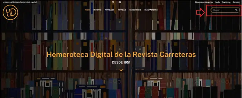 Permite realizar búsquedas por palabras-clave, llevando a cabo un rastreo en todos los PDF de la Hemeroteca. En el resultado se muestran tanto revistas que contengan la palabra-clave introducida, como los artículos.