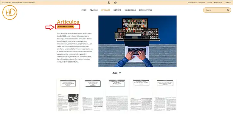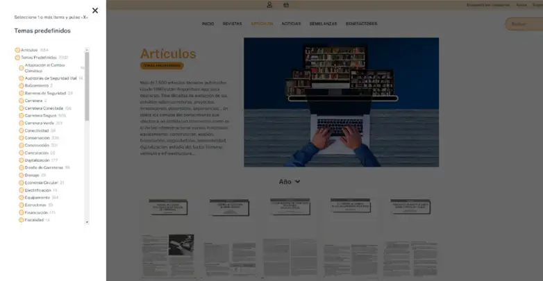 - Artículos: En esta pestaña se pueden realizar búsquedas de los artículos técnicos publicados a partir de 1990 y acceder a los mismos de forma individualizada.