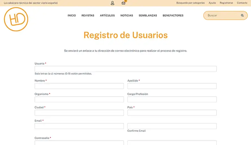 Todo usuario que quiera acceder tanto a los ejemplares íntegros de la revista como a los artículos técnicos recogidos en la web deberá registrarse previamente cumplimentando un formulario.